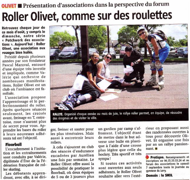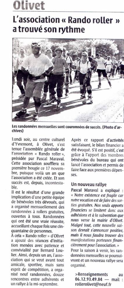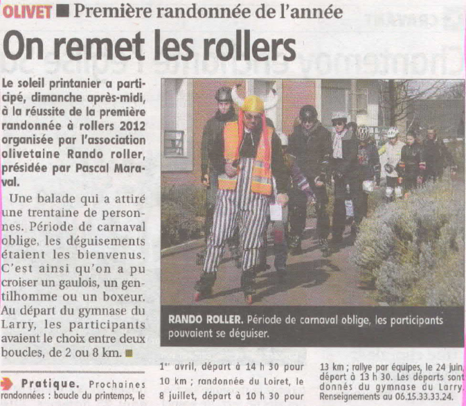 10 mars 2013 : Randonnée roller ouverte à tous (République du Centre 13 mars)