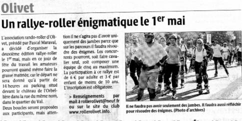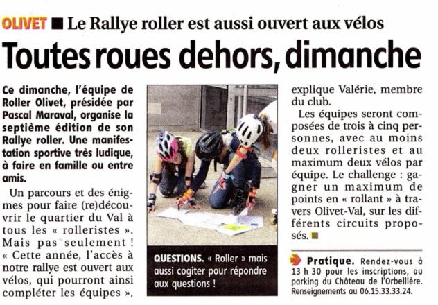 15 mai 2014 : Annonce Rallye Roller et Vélo 9ieme édition (République du Centre 14 mai)
