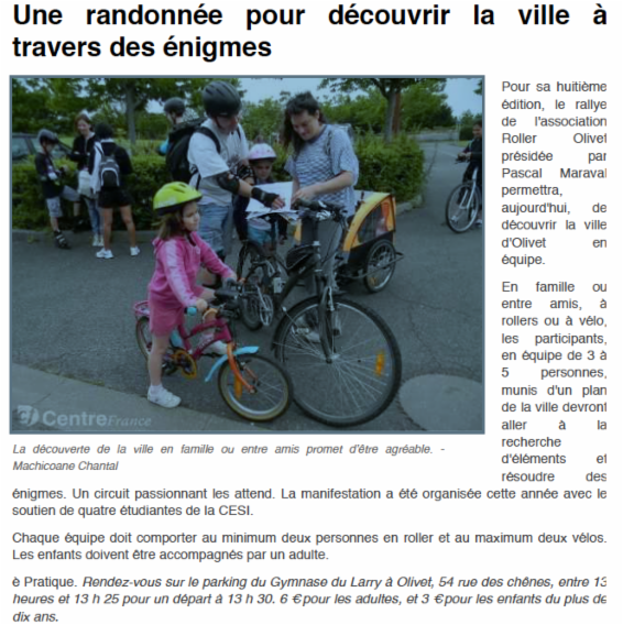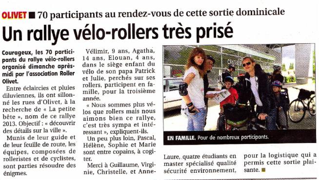 23 juin 2013 : Rallye roller et vélo 8ieme édition (République du Centre 23 juin)