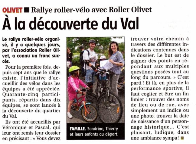 14 juin 2015 : Rallye Roller et Vélo 10eme édition (République du Centre 20 juin)
